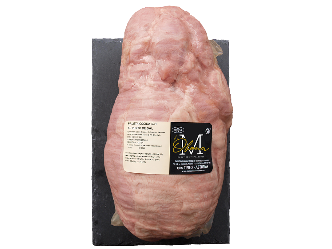 Nuestra paletilla cocida sin hueso se presenta en piezas enteras con un peso aproximado de 4 a 4,5 kg, cuidadosamente envasadas al vacío para mantener toda su frescura, sabor y jugosidad. Debe conservarse refrigerada entre 1 y 7 ºC, garantizando la máxima calidad y seguridad alimentaria.