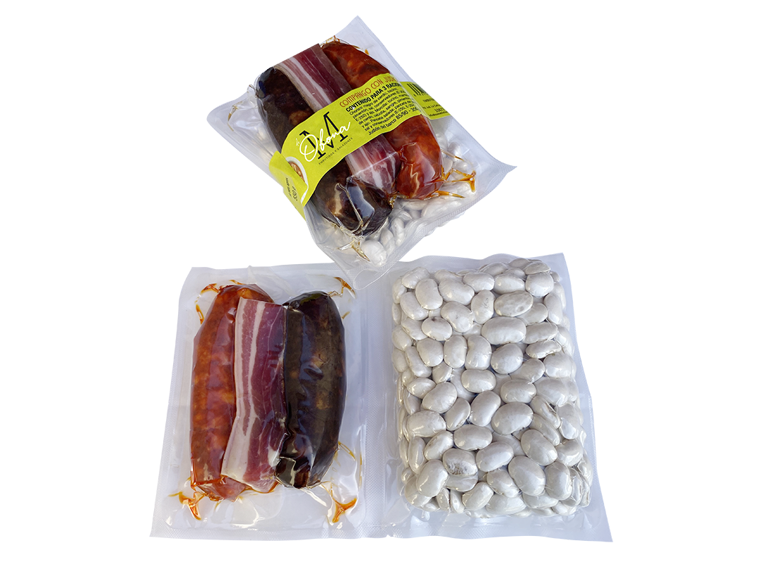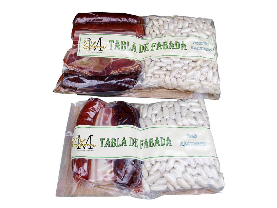 Se presenta en tablas de dos raciones, que contienen 250 g de faba tipo asturiana y 300 g de compango, y en tablas de cuatro raciones, que incluyen 450 g de faba tipo asturiana y 500 g de preparado para cocido. El embalaje se ofrece en cajas de 14 unidades para las tablas de dos raciones y cajas de 8 unidades para las tablas de cuatro raciones, garantizando la conservación óptima del producto y facilitando su transporte y manipulación.